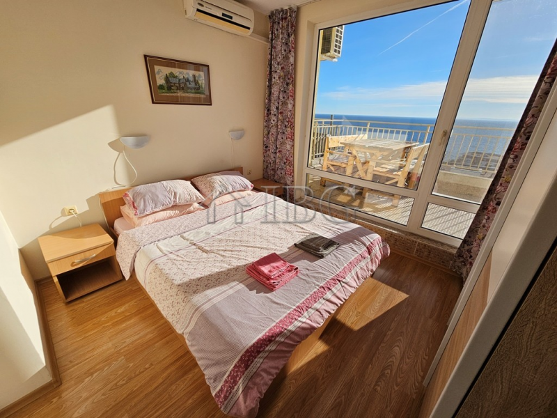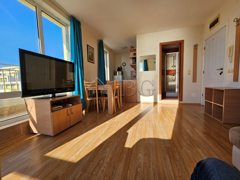 IBG Real Estates is pleased to offer this fully furnished 1-bedroom apartment with spectacular sea & pool views, located on the 6th floor in Crown Fort Club, St Vlas. The complex is part of the Grand Fort Resort, situated on a hill between Saint Vlas and Elenite, offering breathtaking views of the Black Sea, Nessebar’s Old Town, and Sunny Beach.