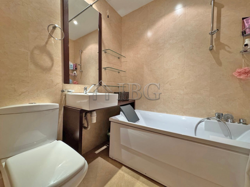 We invite you to invest in a fully furnished one-bedroom apartment in the premium Garden of Eden complex in Sveti Vlas. Located on the first line by the sea, the complex features an elevator leading directly to the beach, white sand, stunning views, and a peaceful vacation environment. It offers all the amenities needed for comfortable living.