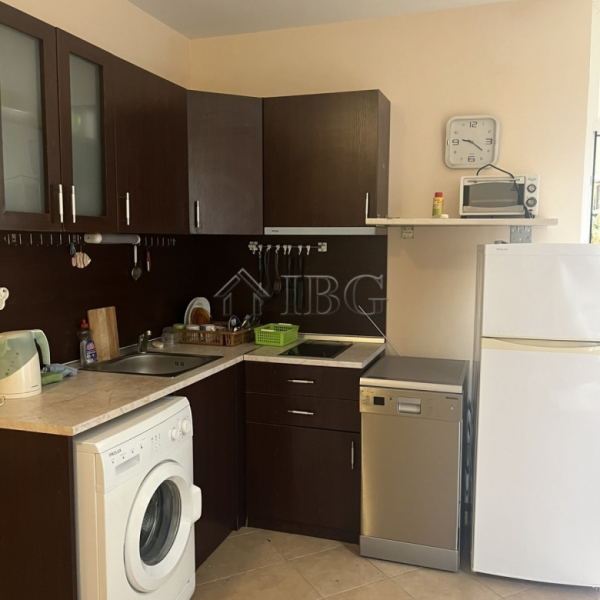 The apartment is for sale furnished and equipped as it is on the photos. The complex is in a very nice area of Sunny Beach, at about 500 meters to the beach and within short walking distance from several restaurants and supermarkets. The complex has a gated territory, a swimming pool with section for children and green area.