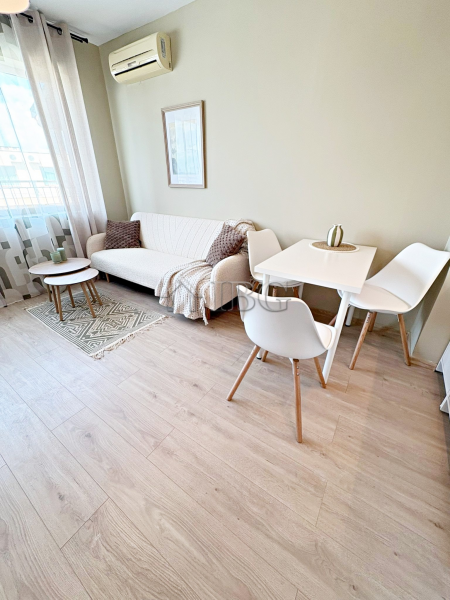 Stylishly renovated one-bedroom apartment located in complex Amadeus 5, located in the heart of Sunny Beach, just 700 meters from the beach (10–15 minutes’ walk) and close to all main attractions.