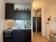 Layout: Entrance hall, living room with kitchen and dining area, one bedroom, a bathroom with toilet and a balcony in front of both rooms