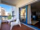 Living room (23.32 m²) with a balcony facing south/west and sea views, fully equipped kitchen with pantry, hallway with built-in wardrobe, suite (18.7 m²) with balcony facing south/west and sea views, built-in wardrobe and full bathroom with bathtub, bedroom (12.6 m²), and a second full bathroom with shower (2.80 m²).