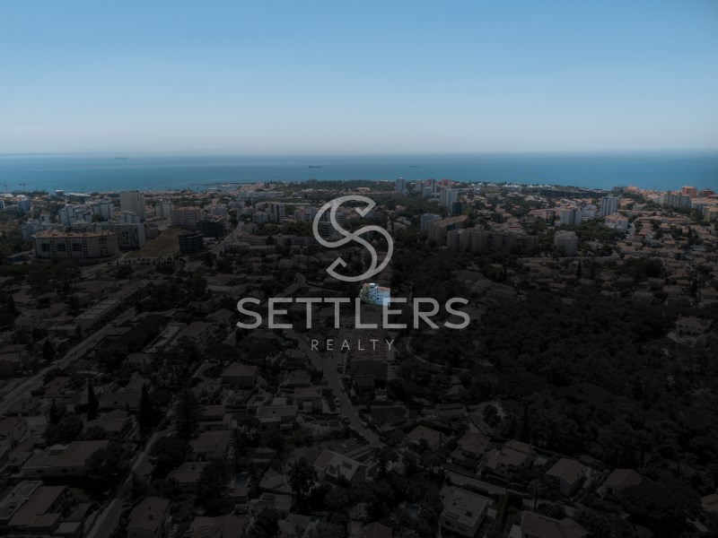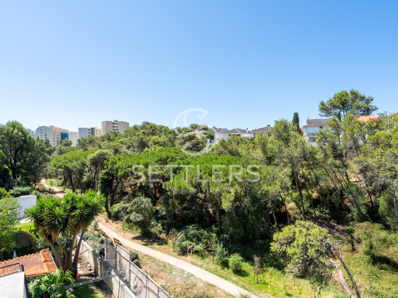 Living room (21 sqm) facing west, with a balcony overlooking the surrounding green spaces of Ribeira das Vinhas.