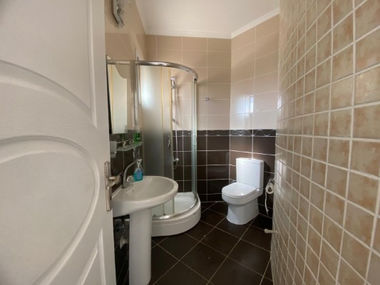 W.C, shower unit and wash hand sink. Tiled with a great modern concept, clean and tidy.