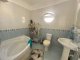A family bathroom in ceramic flooring fitted with a bath, W.C, a sink and one window.