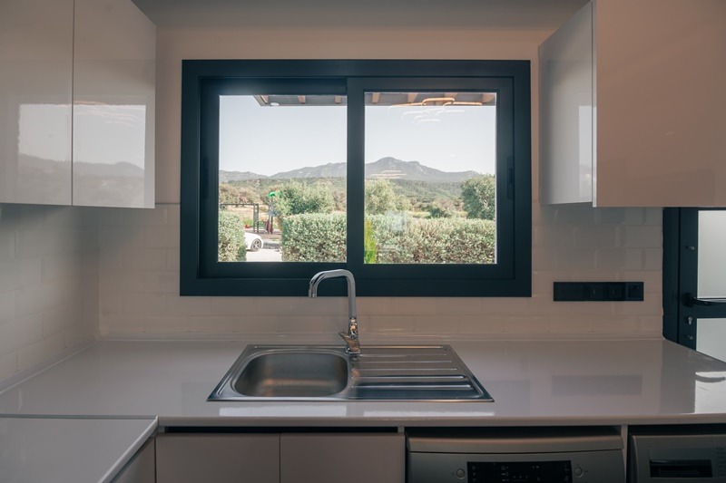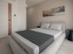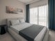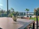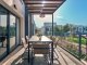 The open-plan kitchen and living room design provides a bright and airy atmosphere, complemented by a 4 seat breakfast / dining bar and ample space for comfortable indoor furniture. Large double sliding glass doors lead directly onto a private terrace with views over the communal swimming pool and landscaped gardens, ideal for outdoor dining and entertaining.