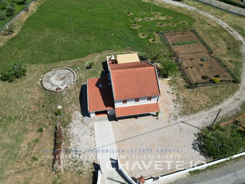 As soon as you arrive, there's a real sense of calm around this property. It's one of those places where you immediately feel the space and the quiet. Set on a generous 8,640 m² plot, fully enclosed and with automatic gates, it offers both privacy and practicality. The land itself is flat and easy to manage, with a lovely mix of fruit trees such as peach, plum, apricot, orange and lemon, along with mature olive trees, so there's even the possibility of producing your own olive oil. There are also two wells, an automatic irrigation system, and a traditional threshing floor that adds a nice touch of local character.