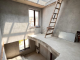 Second level: large living room with kitchen, one bedroom with separate toilet, one bathroom, and terrace