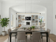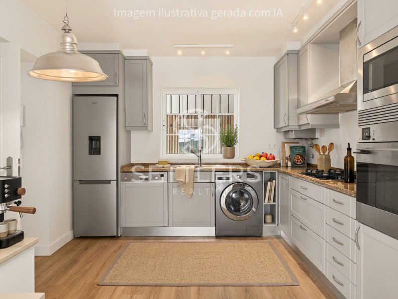 Ground floor - Entrance hall with access to covered parking for two vehicles. Living room with fireplace, arranged in two distinct areas (51 sqm), connected to the fully equipped kitchen (19 sqm). Guest bathroom with window.