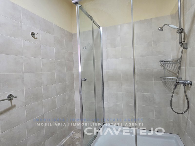 The family bathroom is first on the right, partly tiled and offering a shower, toilet, sink, and window for natural light and ventilation. Next is the spacious master bedroom, which enjoys dual-aspect windows overlooking the rear of the property. The en-suite bathroom is fully tiled, bright, and includes a shower, toilet, and sink.