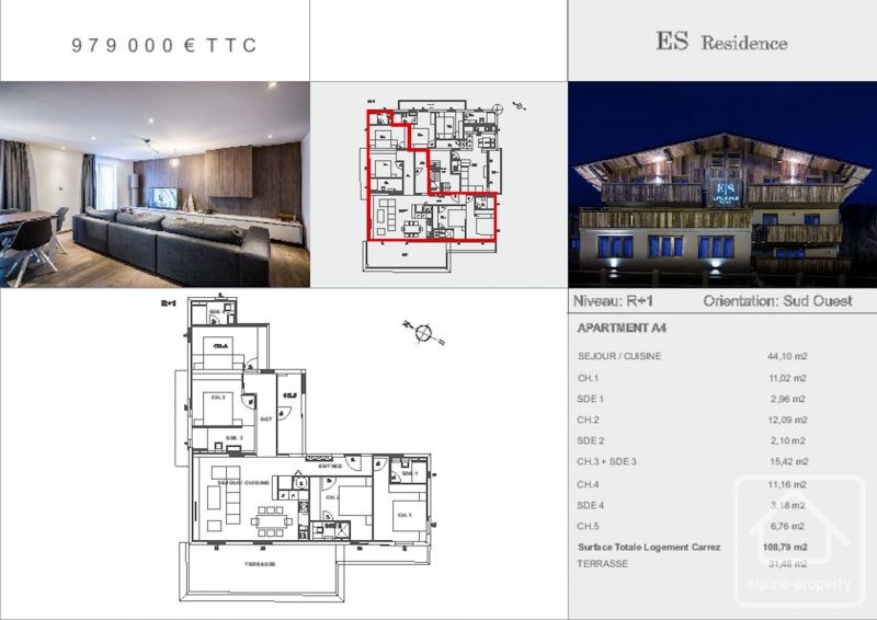 With a surface area of 108.79 square metres, this apartment has been entirely designed for your comfort, featuring a superb living area of 44.10 square meters opening onto a large southwest-facing terrace with views of Pleney and its ski slopes.