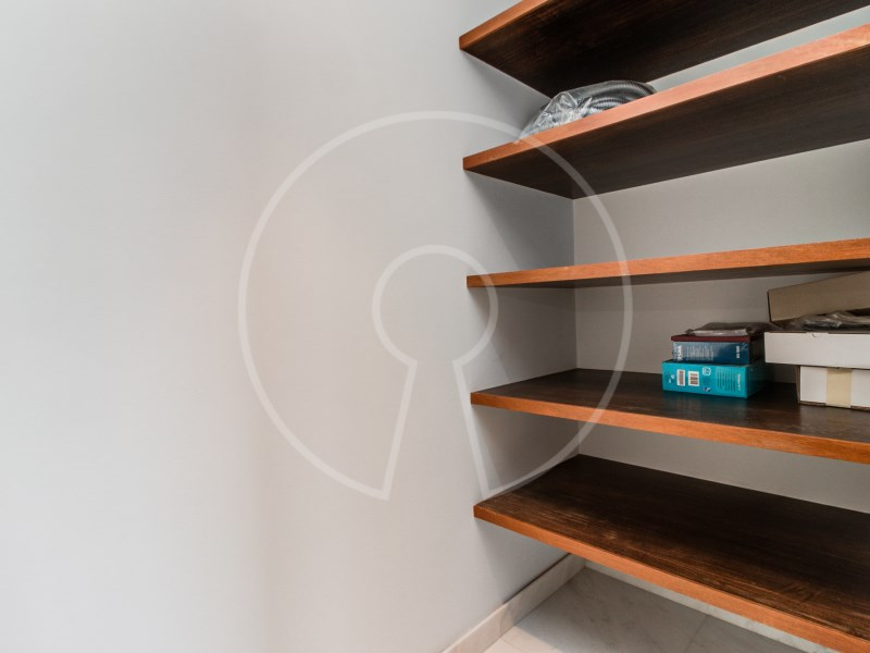 The kitchen stands out for its sparkling white marble flooring from Brazil and built-in AEG equipment, including ceramic hob with grill, oven, microwave, washing machine and dryer. The built-in side-by-side refrigerator is from Liebherr. The property is also equipped with a central vacuum system.
