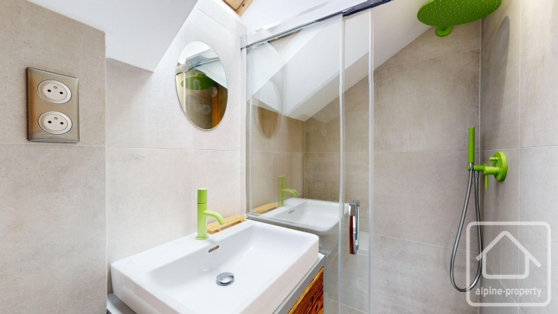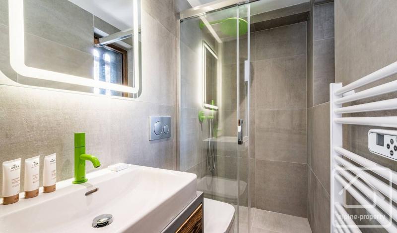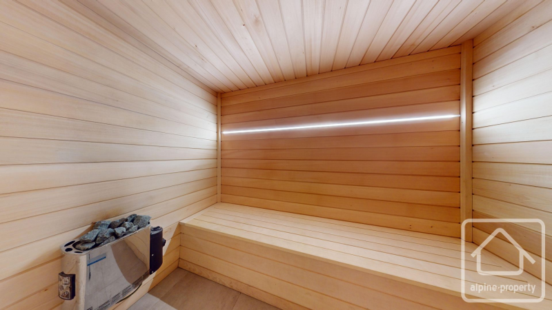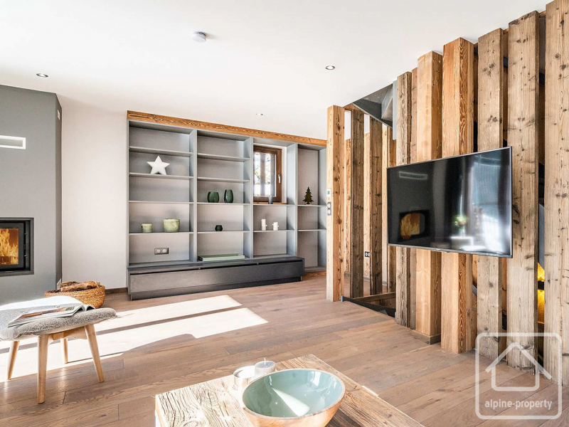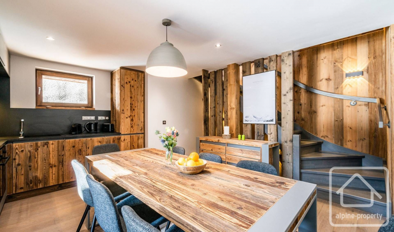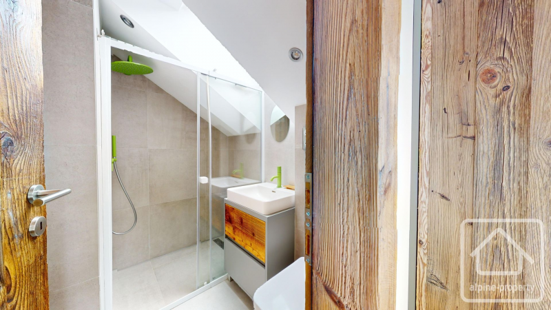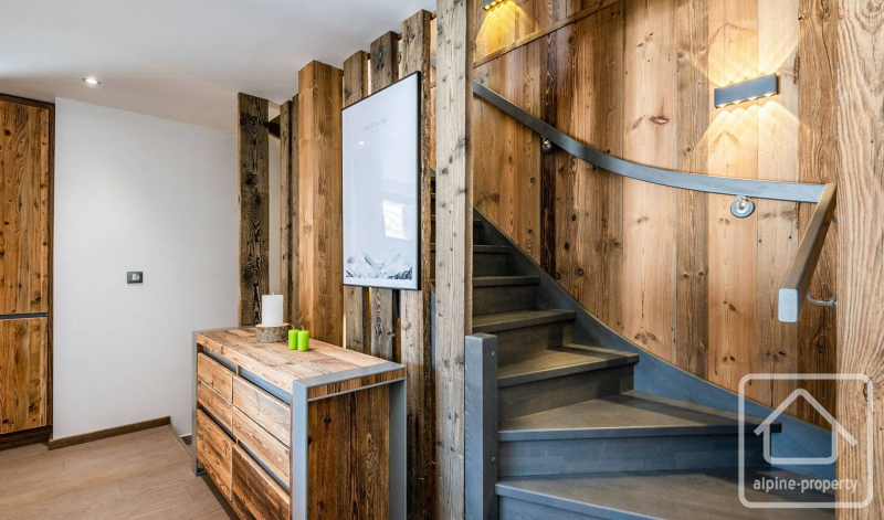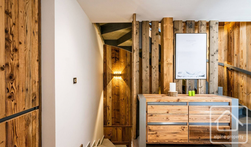 Maison Badi is a semi-detached townhouse over 3 floors, plus a sauna, shower room and additional storage space in the basement. Total habitable surface is 126.44m2 with an additional 37m2 for the garage and ski locker, and 76m2 of south facing terrace across 3 levels.