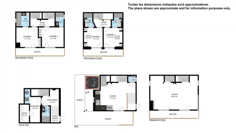 It comprises thus: underground are the garages, lower ground floor is the laundry and boiler room, sauna, shower room with WC.