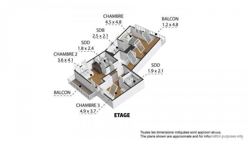 **Upper level:** south-facing master bedroom with balcony and ensuite with bath and shower, two further bedrooms with shower ensuites, one with north-west facing balcony.