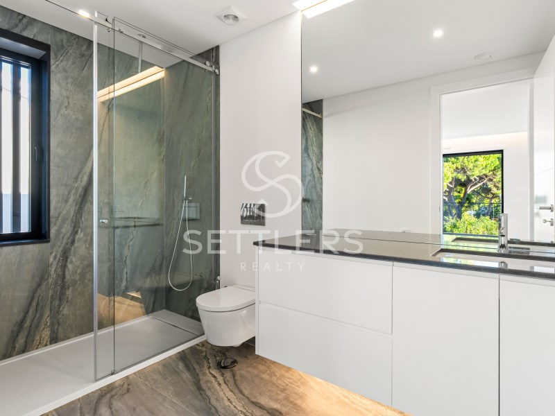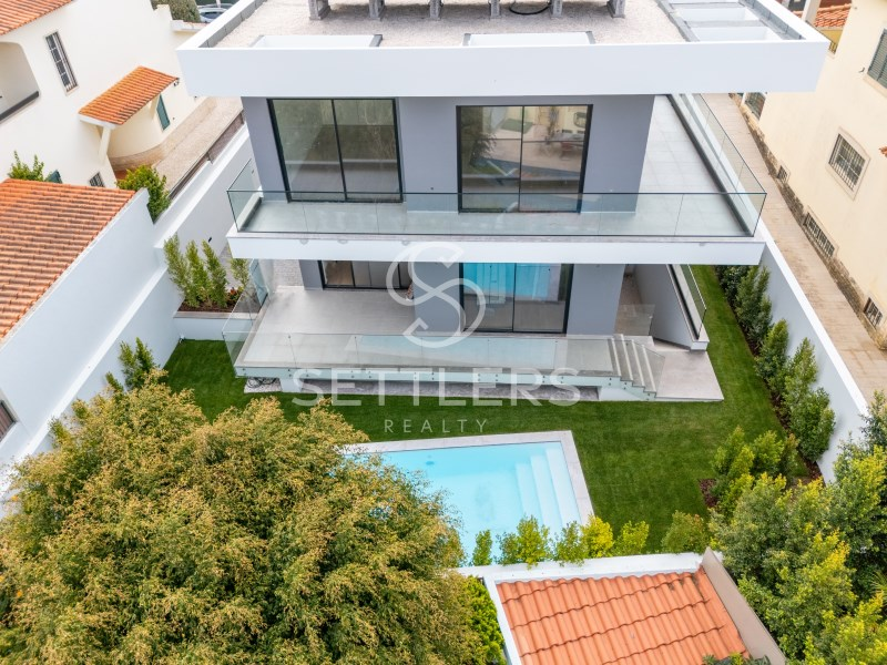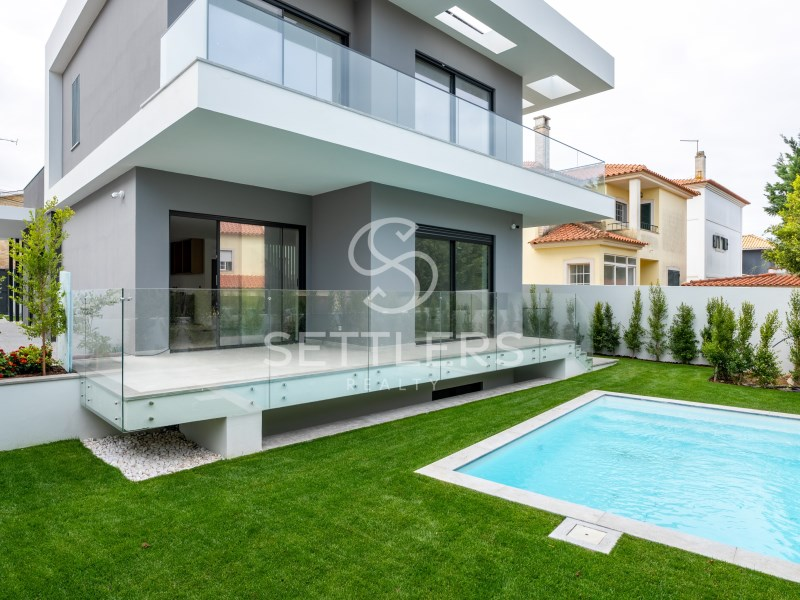 Detached villa with contemporary architecture, located in Aldeia do Juzo, Cascais. Just 2 minutes from the A5 motorway and 5 minutes from King's College, it offers a strategic location combining convenience, fast access, and proximity to high-quality services.