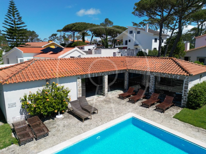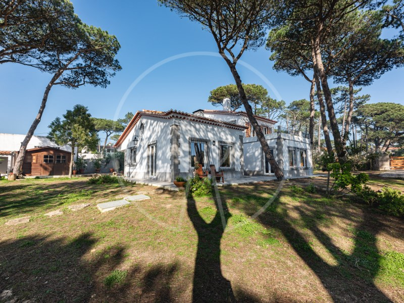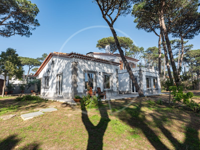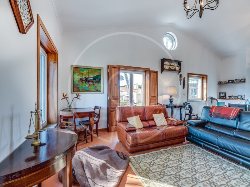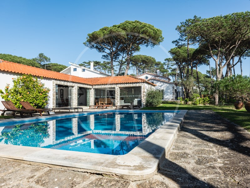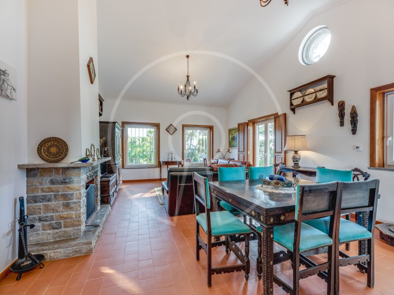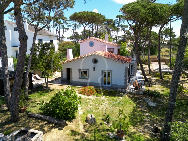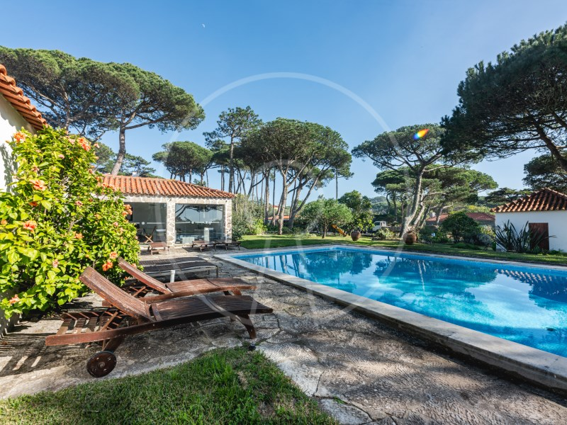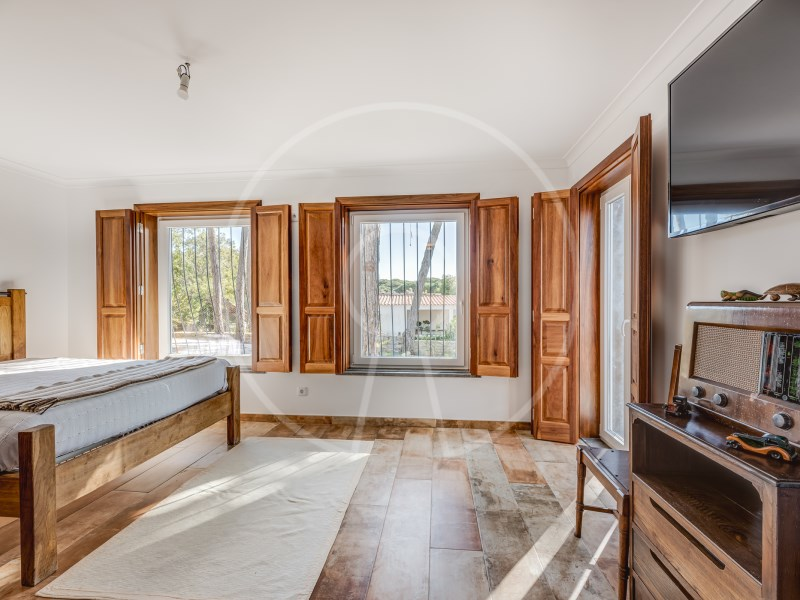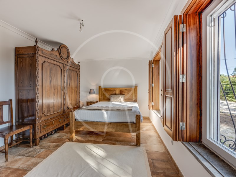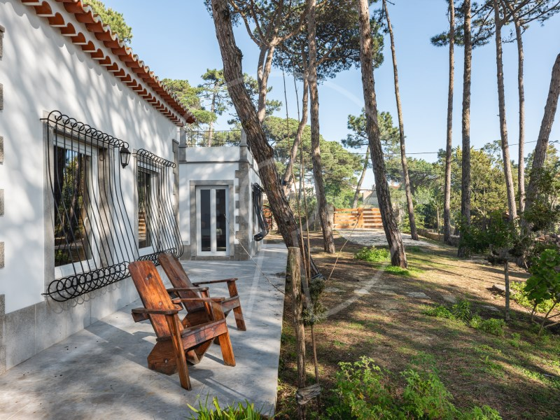 The main residence has two floors, with two suites, an additional bedroom, a spacious living room with fireplace, fully equipped kitchen and a terrace with stunning views of the Sintra Mountains. In addition, the exterior has a swimming pool, lounge area, barbecue, a beautiful garden with pine forest and automatic irrigation system, perfect for outdoor leisure time.