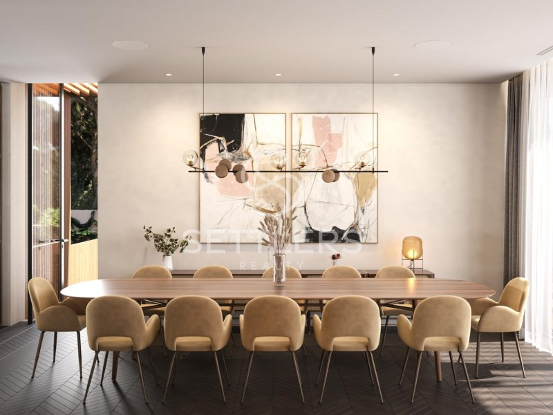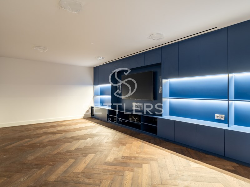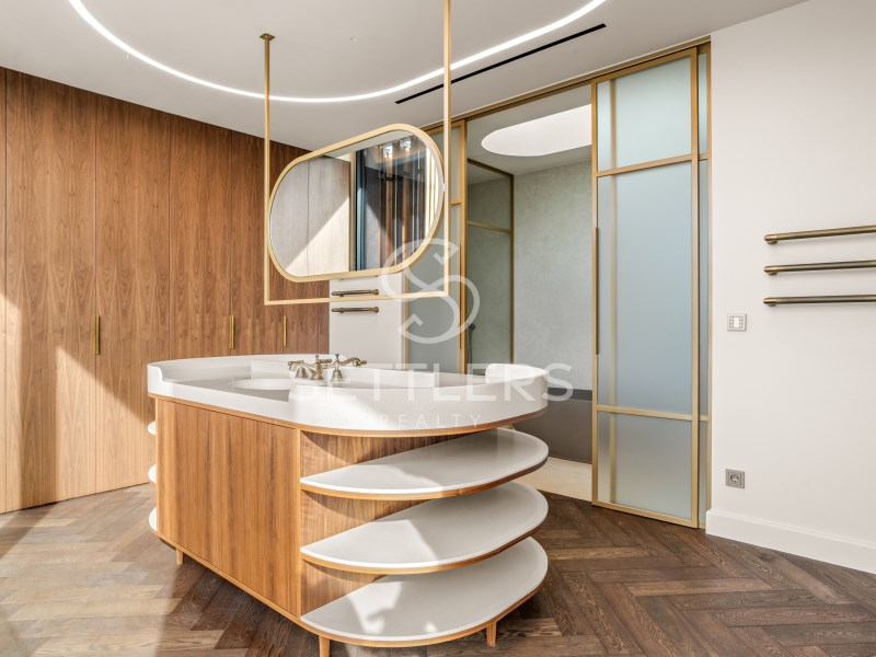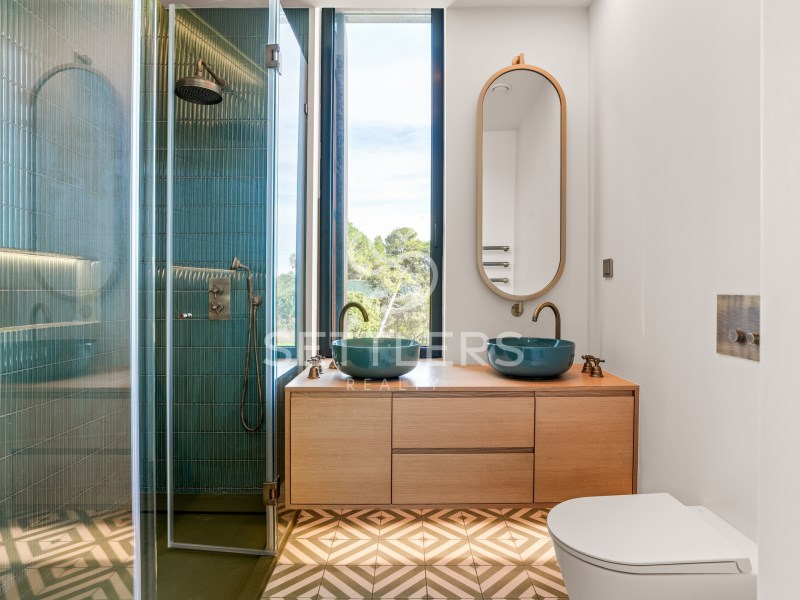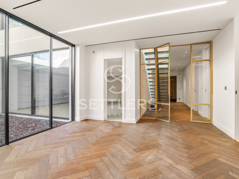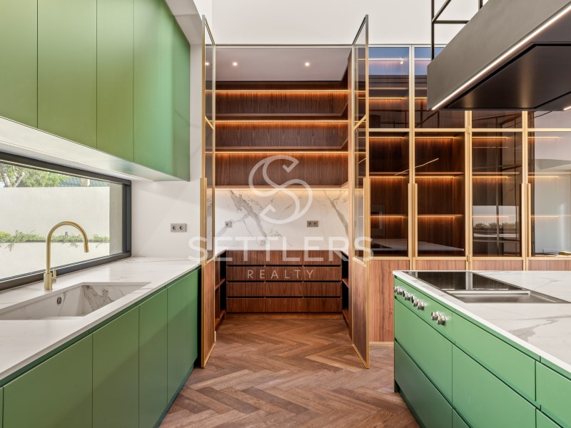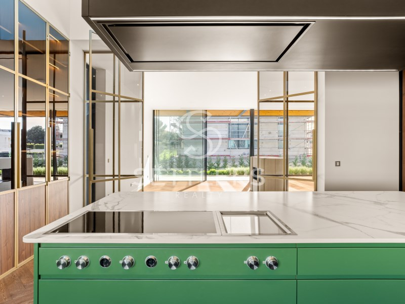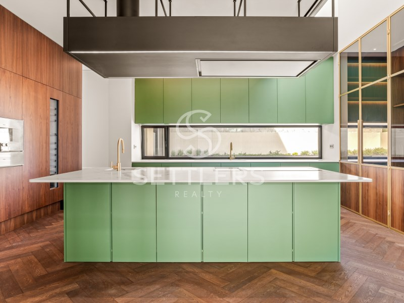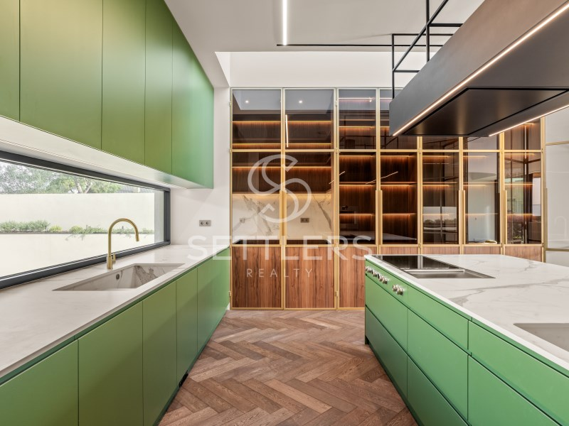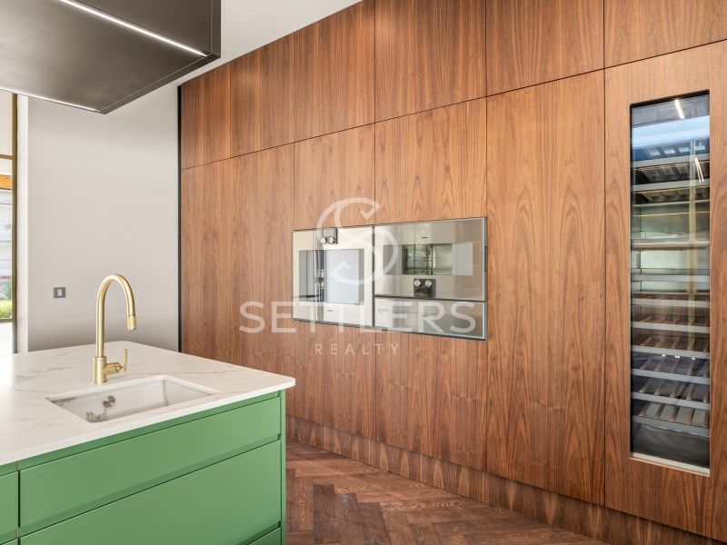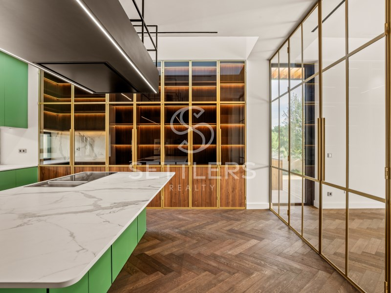 Fully equipped Gaggenau kitchen (35.5 sqm) with central island and informal dining area, climate-controlled wine cellar for 80 bottles, pantry and full-height cabinetry. Direct access to an outdoor area prepared for barbecue, dining space and pergola. This floor also includes a guest bathroom (4.5 sqm) and a suite/office (23 sqm) with fitted wardrobes. All rooms have access to the surrounding garden.