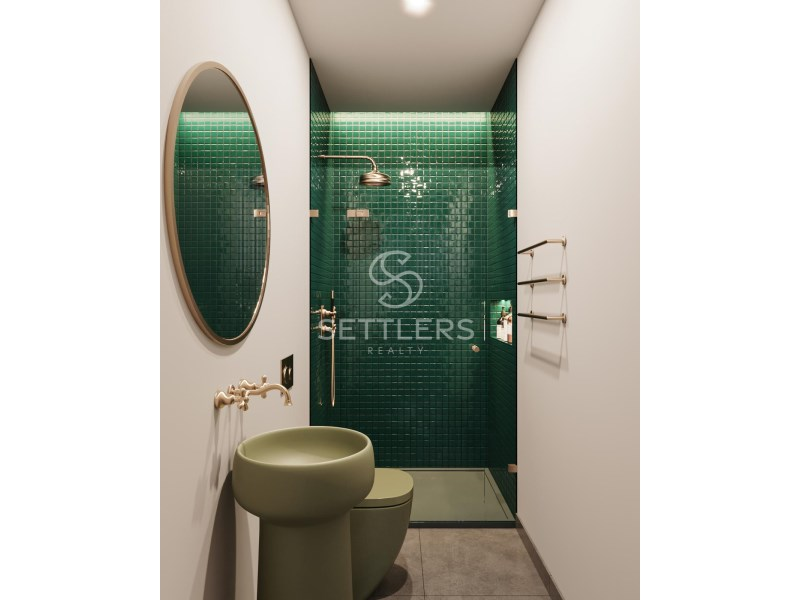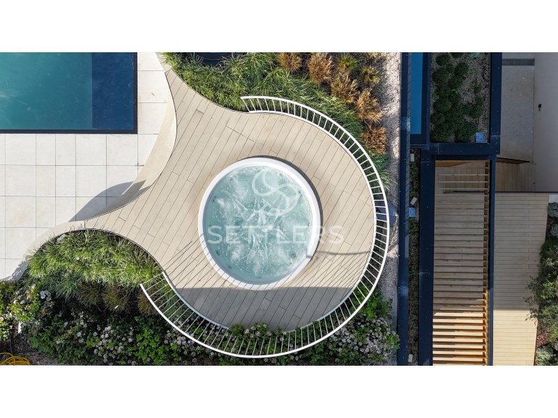 Ground floor - Entrance hall (25 sqm), defined by an imposing natural stone wall extending through the different floors and illuminated by a large skylight. Living room with three distinct areas (90 sqm), including a lounge with bioethanol fireplace and a TV area with double-height ceilings, with direct access to the garden and the heated swimming pool (50 sqm), equipped with an outdoor shower.