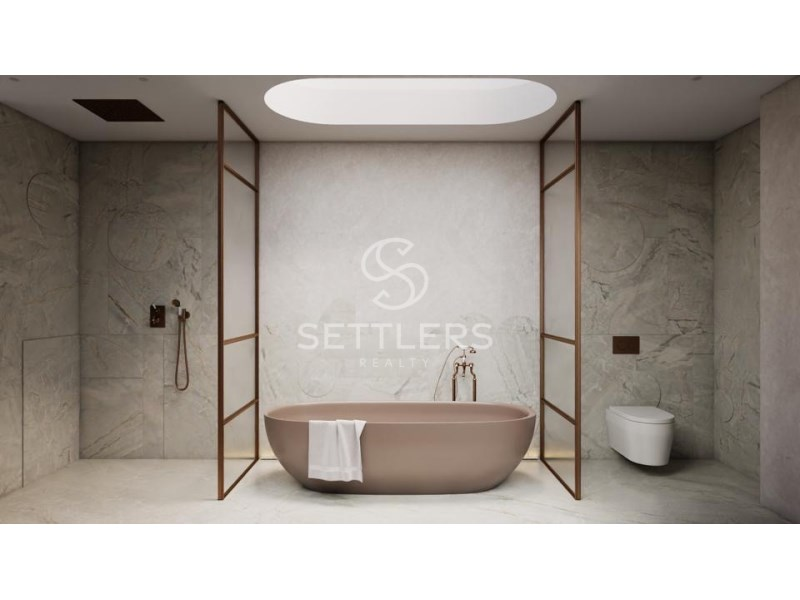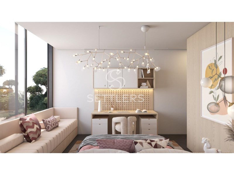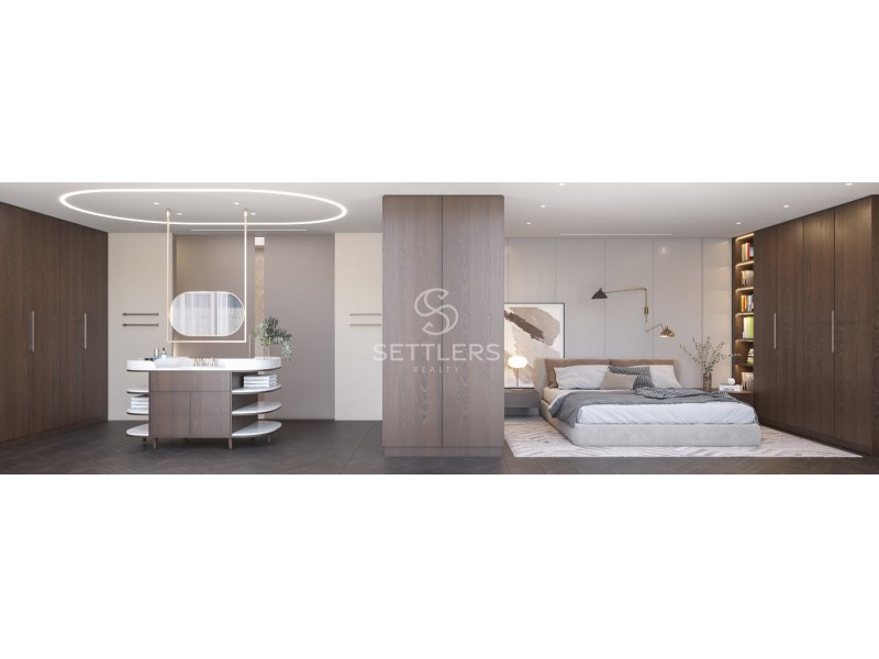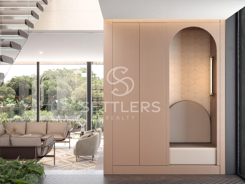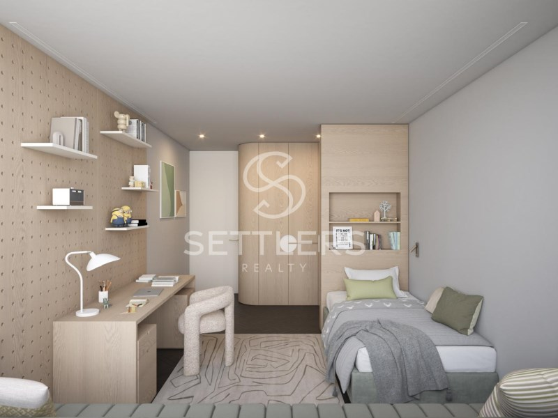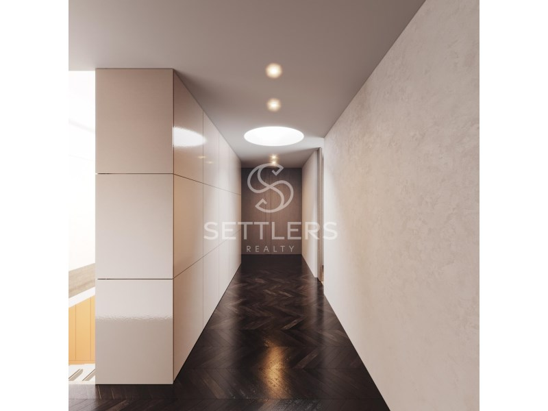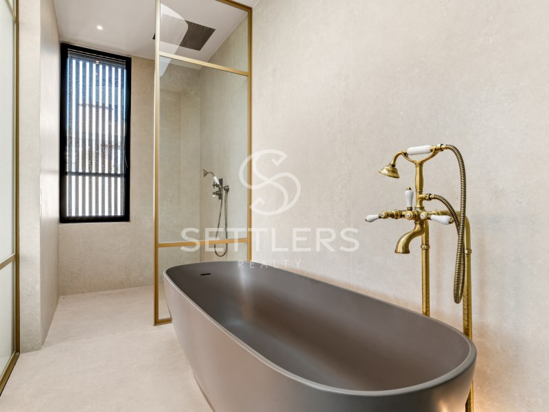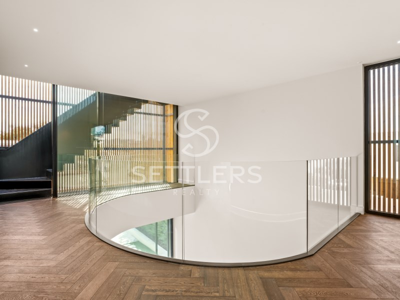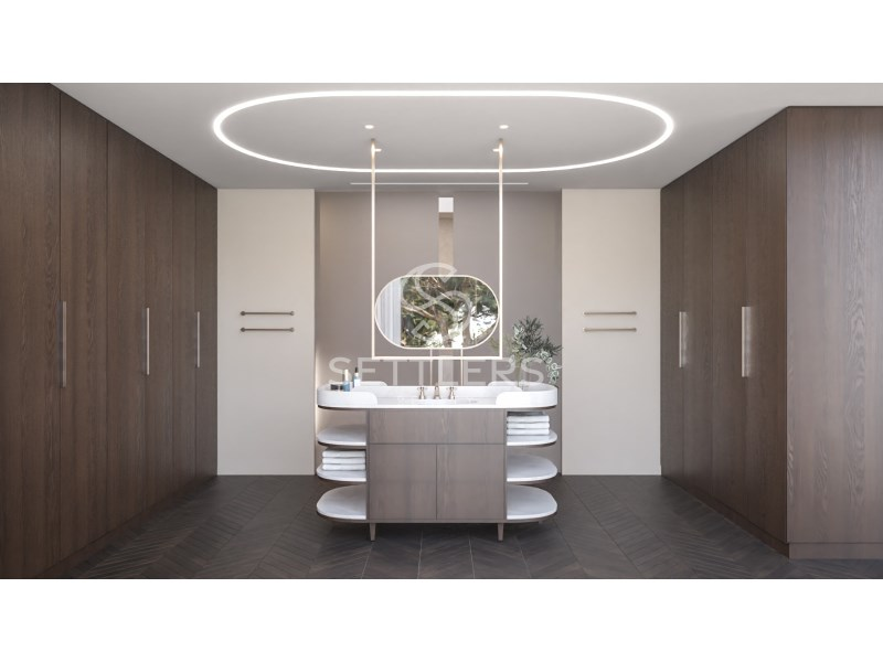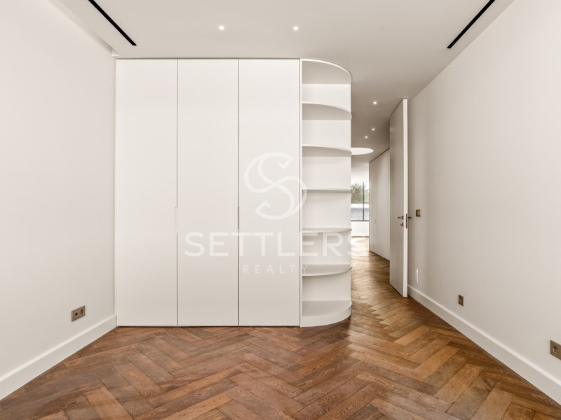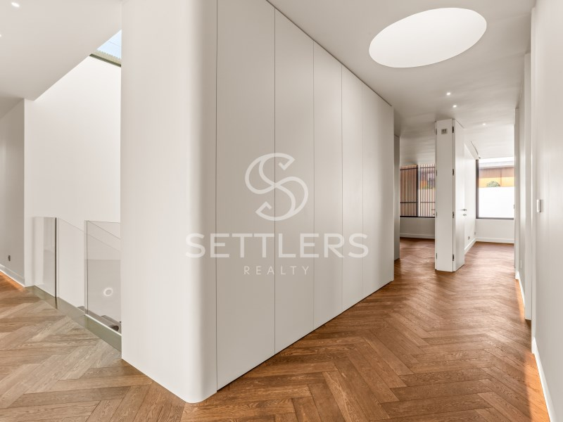 Upper floor - private area - Master suite (45 sqm) with bathtub and three large wardrobes. Two additional suites (20.1 sqm and 20.7 sqm), one with walk-in closet, two bedrooms (15 sqm and 18 sqm) with fitted wardrobes and a full supporting bathroom (5 sqm). Circulation area with integrated storage (33 sqm).