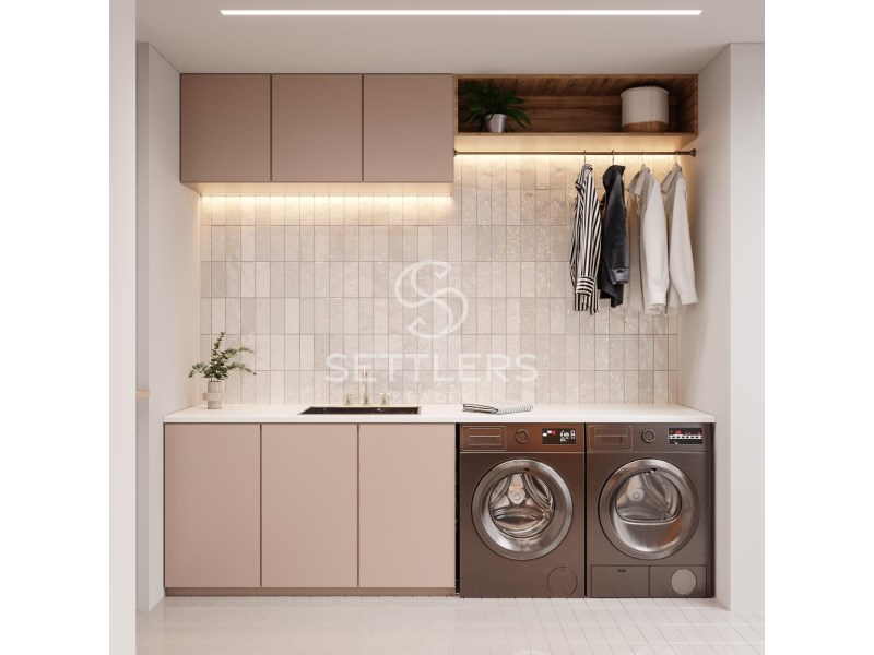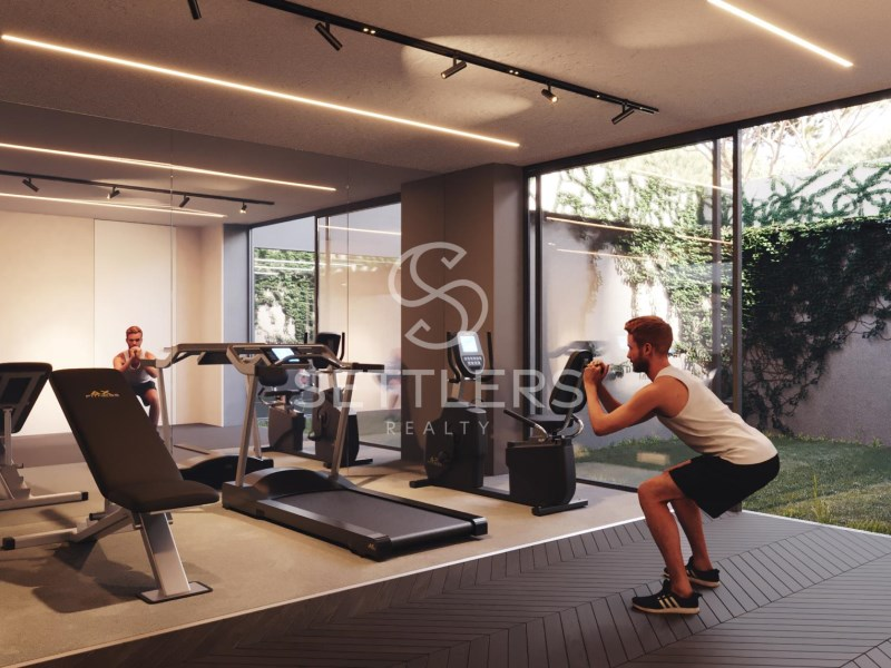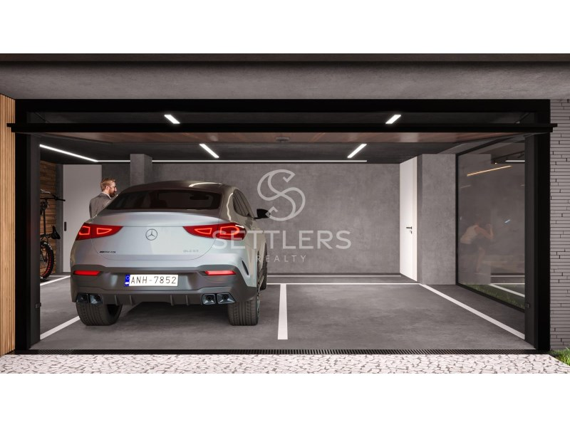 Lower floor - Space prepared for a climate-controlled wine cellar (20.4 sqm), fully equipped home cinema room (23.2 sqm), seasonal storage/closet (17.3 sqm), fully equipped kitchenette, laundry room (12.5 sqm), bedroom with wardrobe (15.7 sqm) and supporting full bathroom (4 sqm). Multipurpose room (20.25 sqm), ideal for a gym, with access to an inner patio/winter garden (17.9 sqm). Box garage (48.7 sqm) with capacity for two to three vehicles, complemented by covered outdoor parking for two additional cars, as well as space for bicycles, motorcycles and boards.
