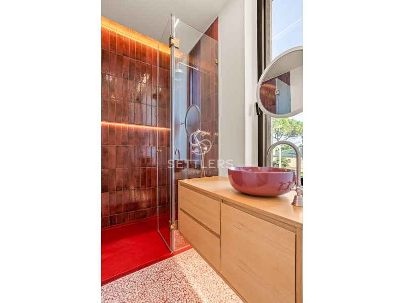 Underfloor heating throughout, oak flooring in herringbone pattern, Fluxoterm central climate control system, home automation, ambient sound system, solar panels for domestic hot water with dedicated storage tank, heated swimming pool (50 sqm), thermal jacuzzi for six people, double-glazed windows with thermal and acoustic insulation, ETICS exterior insulation system, automatic gates, natural stone finishes and handcrafted ceramic tiles by Viúva Lamego and Bela Silva in the bathrooms.