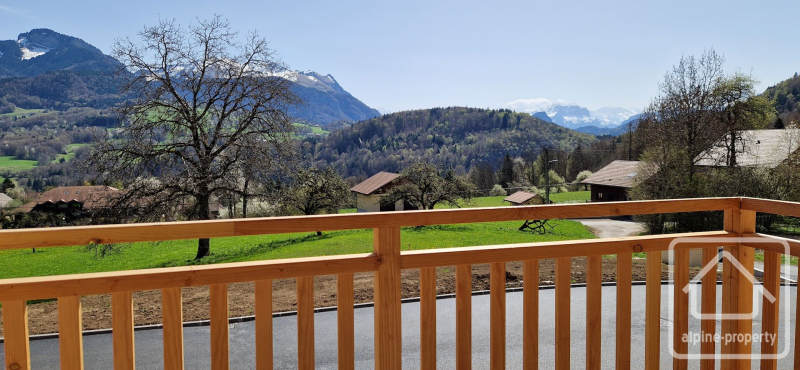 This bright first-floor apartment features an east-facing balcony (5.80 m²) that enjoys morning sun and views of Mont Blanc, as well as west-facing windows that capture the afternoon sun and panoramic views of the Massif des Brasses.
