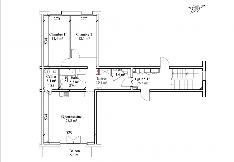 This bright first-floor apartment features an east-facing balcony (5.80 m²) that enjoys morning sun and views of Mont Blanc, as well as west-facing windows that capture the afternoon sun and panoramic views of the Massif des Brasses.