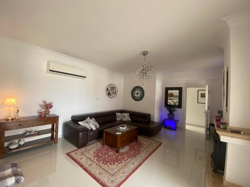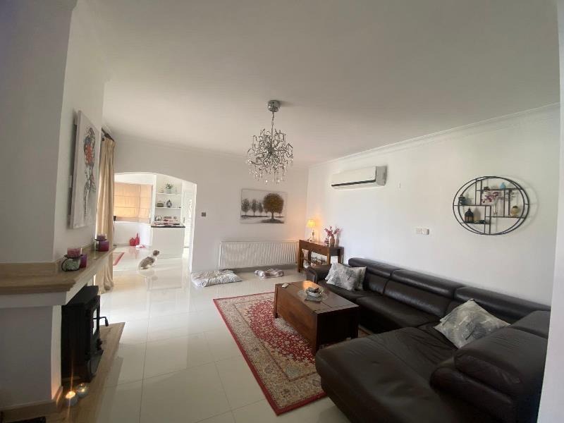 A good sized air-conditioned room with a large corner sofa, and a built in fire place creates a cozy atmosphere for the cooler season with additional optional central heating. Glass French sliding doors which lead onto a large covered, pool facing terrace finish the interior.