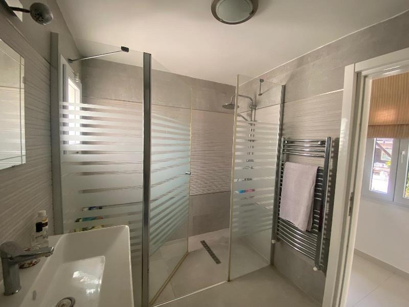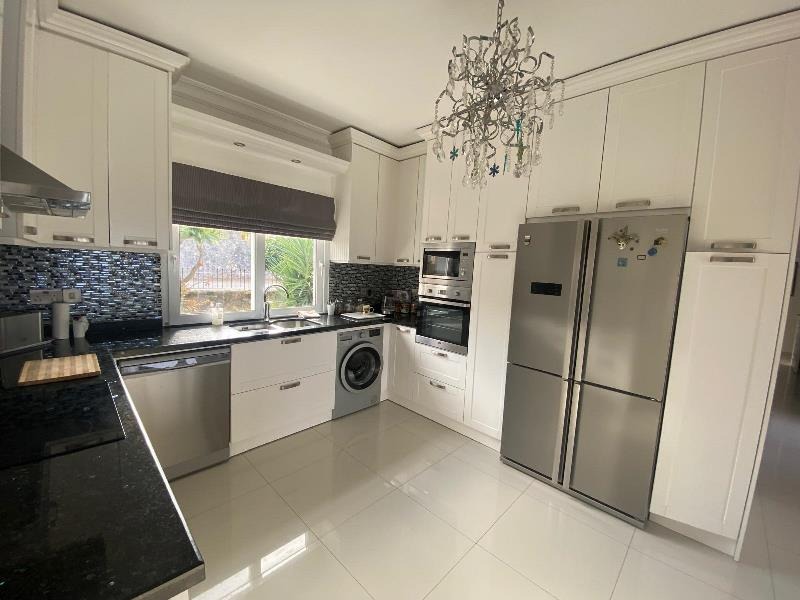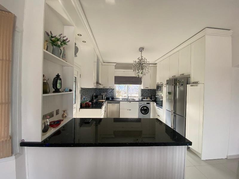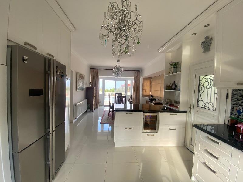 A stylish fully equipped kitchen and dining room complete with integrated modern white goods and appliances. Additionally features a great breakfast bar. A room full of windows along with glass sliding doors which lead onto the pool terrace ensures plenty of natural light and allows a cool breeze in the summer season. There is also a main entry door.