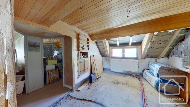 Opposite the house stands a traditional two-storey Mazot, typical of the region. While not suitable for habitation, it offers excellent options for workshop, storage, or studio space.