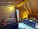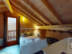 **On the first floor**, there is a spacious, bright living room with a charming fully equipped kitchen and a wood-burning stove, as well as direct access to the terrace. On the same level, there is a double bedroom with access to the terrace and a bathroom.
