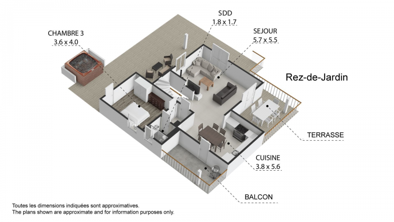 Situated on a 764 m² plot, the chalet features private green spaces and a beautiful terrace with space for a hot tub.