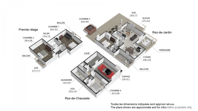 **On the lower level**, there is a bedroom with an en-suite bathroom, as well as a laundry room, a cave and a garage for one vehicle.