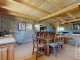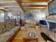 From the expansive terrace, the front door opens into a well appointed kitchen with a wood burning range cooker. There is an open plan living room with a built-in log fire, also the main bedroom with washing facilities and a cellar.