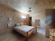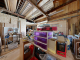 Stairs lead up from the living area with a large trap door on a pulley so that the heat can be retained if the 1st floor is not in use. On this level there are two large bedrooms, a shower room, two composting toilets, a workshop and equipment store with access outside.