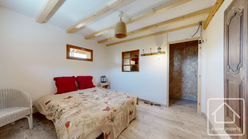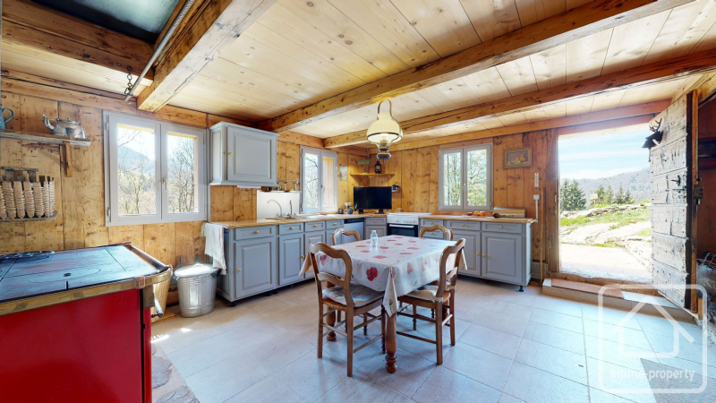 This ferme d’alpage has been conscientiously renovated with quality materials to a very high standard. It is completely independent, collects rainwater (although there is a source nearby), has solar panels with a battery and a backup generator. There is a water heater for the hot water and a heating circulation system using the heat from the kitchen stove.