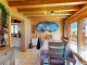 **- On the ground floor:** Kitchen and open plan living/dining room with fireplace (with access to large terrace), bedroom with private balcony, bathroom, separate guest WC, entrance hall with storage.
