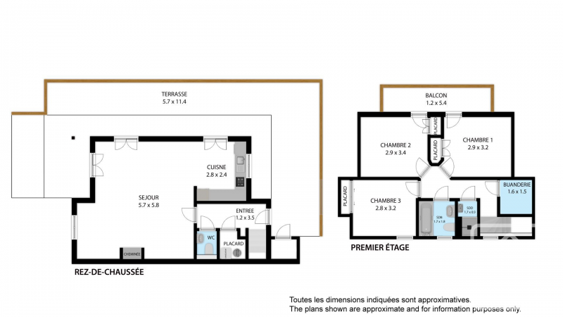 **On the first floor,** three bedrooms (two with balconies, all with built-in storage), bathroom with WC, shower room, storage room with washing machine.