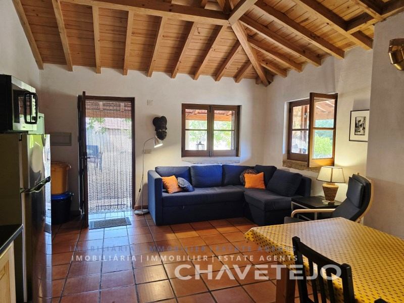 At the rear of the cottage, a charming covered patio offers the perfect setting for outdoor dining and relaxing while enjoying the tranquil surroundings. Beneath the covered alpendre, there is also access to a beautifully restored bathroom. Just behind the main house, you'll find a traditional bread oven, still fully functionala delightful nod to the property's history and rural heritage.