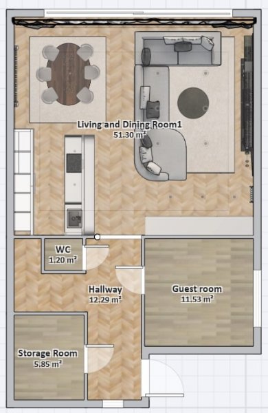 • Living and dining room; 51.30 m2