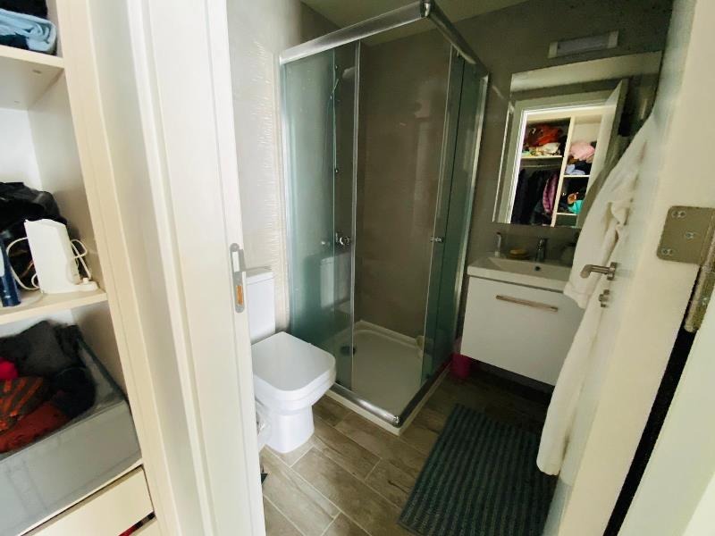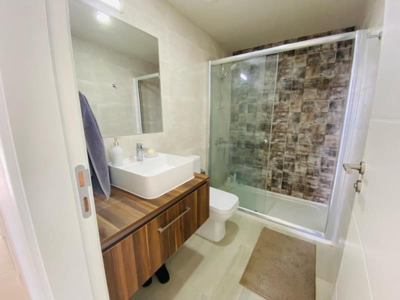 The family bathroom contains a large walk in shower with a big basin containing a small cupboard space situated just underneath along with a w/c. The tile finishing of the bathroom is of high quality.