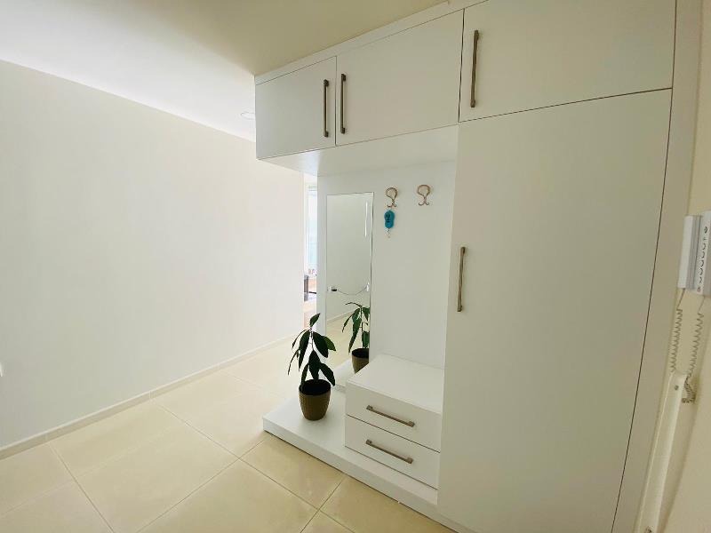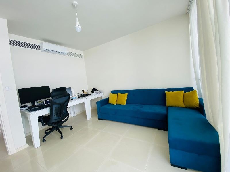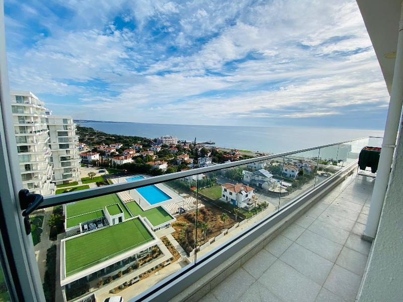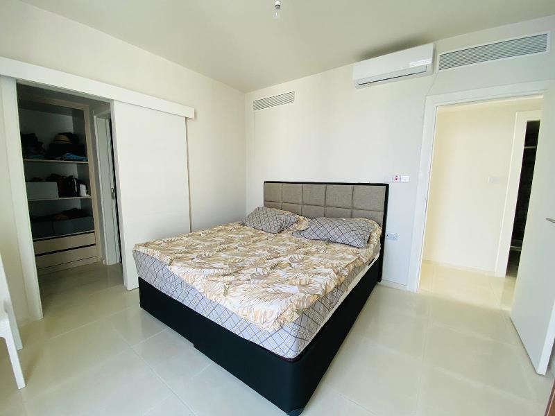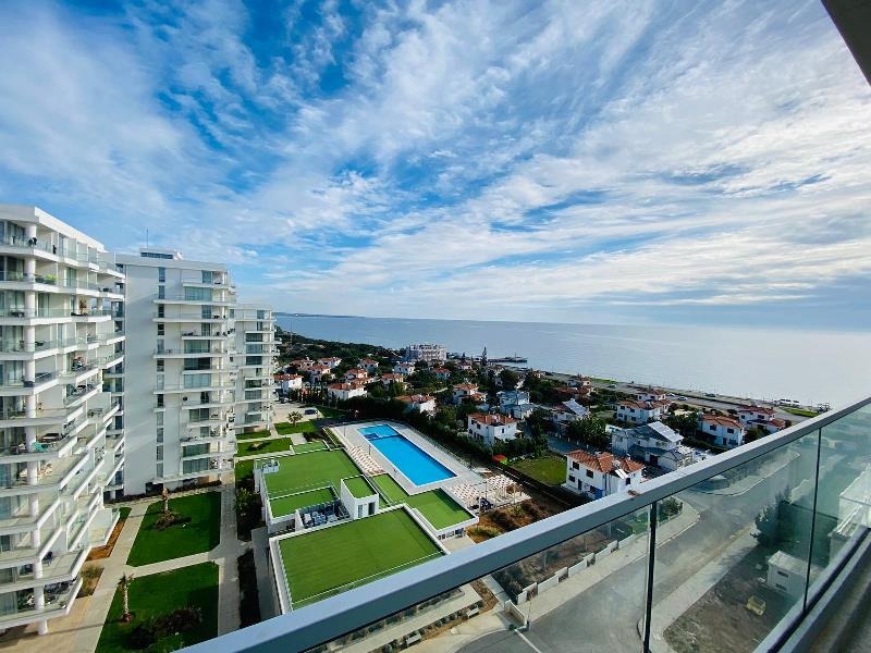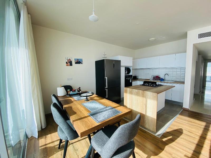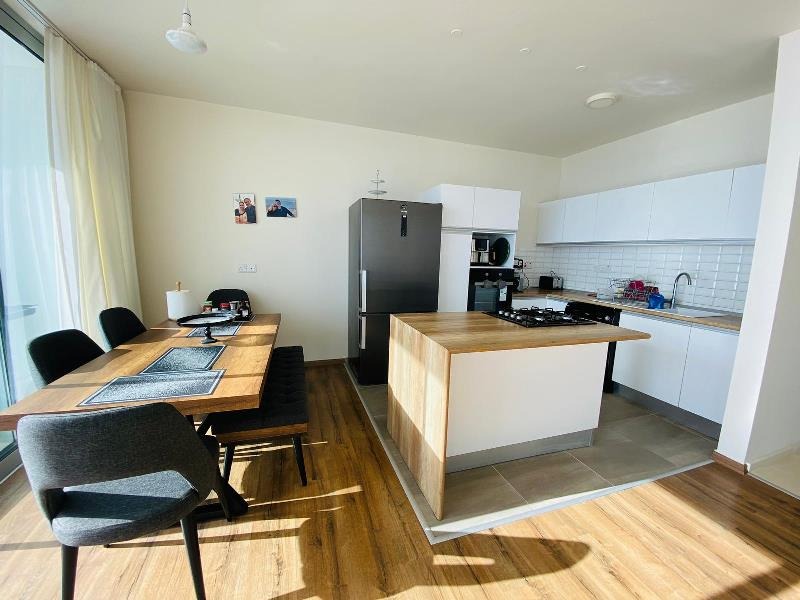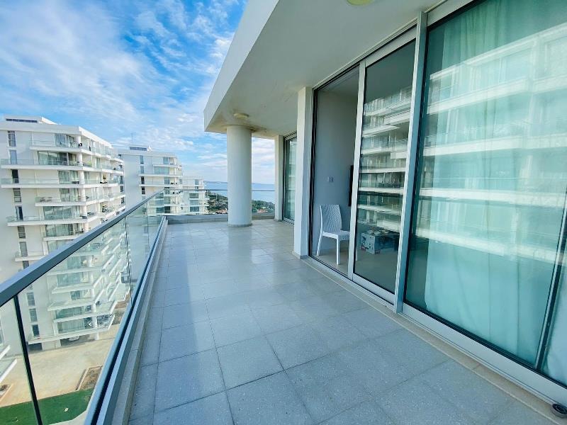 This fabulous open plan room consists of large floor to ceiling glass doors allowing the natural rays of sun to gleam through the day along with a fresh sea breeze. The views no doubt are exceptional as a corner plot showing the entire coast line. The balcony boasts a large area of 53 m2 terrace big enough for a full outdoor family sofa set and even a Jacuzzi! The kitchen is very smart, open plan and sits to the left of the living room with a built in breakfast bar.