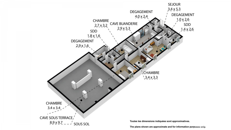Step onto the sprawling 100m2 terrace and be greeted by sweeping panoramas that will take your breath away. In the summer, nature unfolds before your eyes, offering an idyllic setting for al fresco dining, entertaining, or simply basking in the splendour of your surroundings. In the winter, enjoy the excitement of watching the world ski by in, and when night falls, turn it in to your own open-air dance floor under the stars. Party the night away, there is no-one here to hear you! Underneath the terrace, an additional 100m2 covered space awaits your imagination, providing potential for conversion into a solarium and spa to enhance your mountain experience.