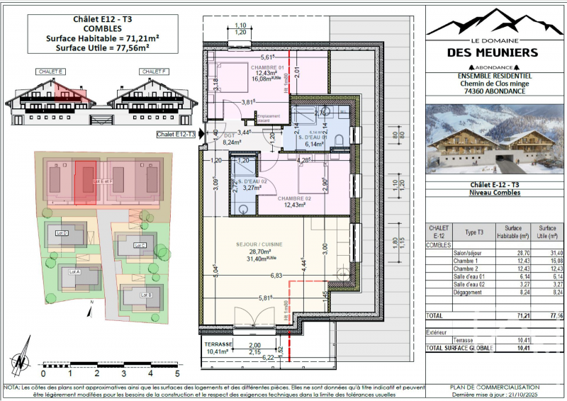 **Appt E12** (attic apartment), 71.21 sq m habitable with a 10.41 sq m terrace, 465.000 € including parking space and cave.