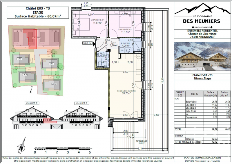 **Appt F03**, 60.07 sq m habitable with a 52.92 sq m terrace, 352.000 € including parking space and cave.