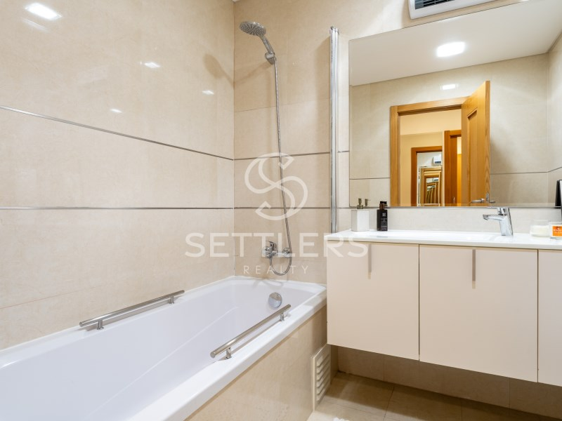 Área de circulação (2,7m2), WC completo com banheira (2,7m2), Suíte com roupeiros feitos á medida (17m2) com WC completo com base de chuveiro (4,3m2) e acesso direto ao terraço, Quarto com roupeiro (13,6m2)