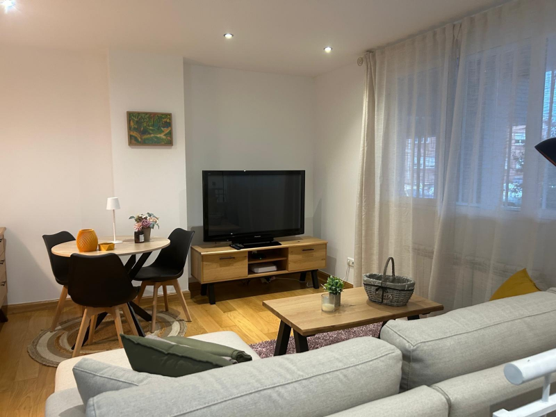 Discover your new home in this charming flat for sale! With a floor area of 62 m² and 55 m² of usable space, this bright ground floor flat offers the perfect layout to enjoy every corner. The south and north orientation allows natural light to flood the space, enhancing the modern parquet flooring and white walls that bring freshness and spaciousness.~~The separate living room is ideal for relaxing, while the refurbished kitchen, equipped with new appliances, invites you to prepare delicious meals. The bathroom, which is completely new, features an elegant walk-in shower tray that adds a contemporary touch. The master bedroom is equipped with air conditioning, ensuring comfort all year round, and the second bedroom is perfect as a study or guest room.~~Located next to municipal swimming pools, a gym and paddle tennis courts, this flat is not only ideal for living, but also an excellent investment option. In addition, its proximity to schools, pharmacies and public transport makes everyday life easier. With good thermal insulation and individual heating meters, this home is ready to move into. Don't miss the opportunity to visit it and fall in love! The parking space included in the price is a great bonus. Contact us for more information!~