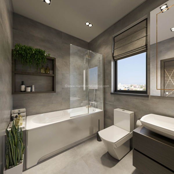 Both bedrooms are double in size and feature floor-to-ceiling fitted wardrobes for ample storage. The master bedroom enjoys the added benefit of a private ensuite bathroom, while the second bedroom is served by a well-appointed family bathroom, available with either a walk-in shower or bathtub, along with WC and sink.
