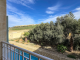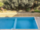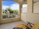 The communal pool area is spacious, featuring an elevated section planted with mature olive trees that add to the relaxed Mediterranean ambiance. The property also includes an underlying single-car garage, providing secure parking or additional storage.